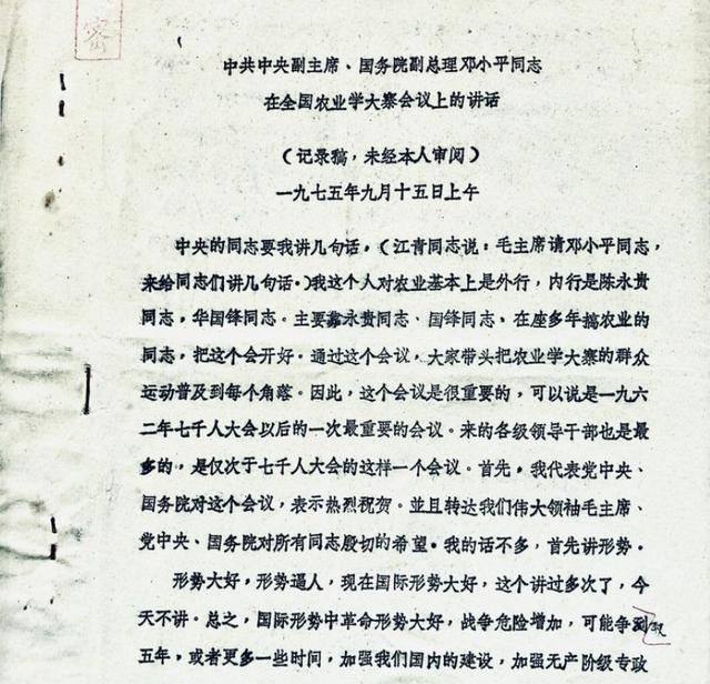 1975年小平同志在大寨发表讲话 我对农业是外行 内行是国锋同志